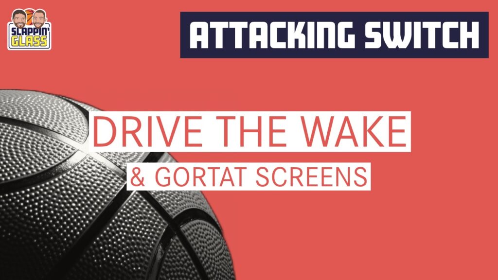 “Drive the Wake” refers to the ballhandler, after a switch (or sometimes a hedge), attacking the defending big by driving back into the area where the screen occurred. The penetration follows the roller, who creates an open gap in the defense with the roll, leaving a “wake” of space for the ballhandler to exploit and beat the defending big.